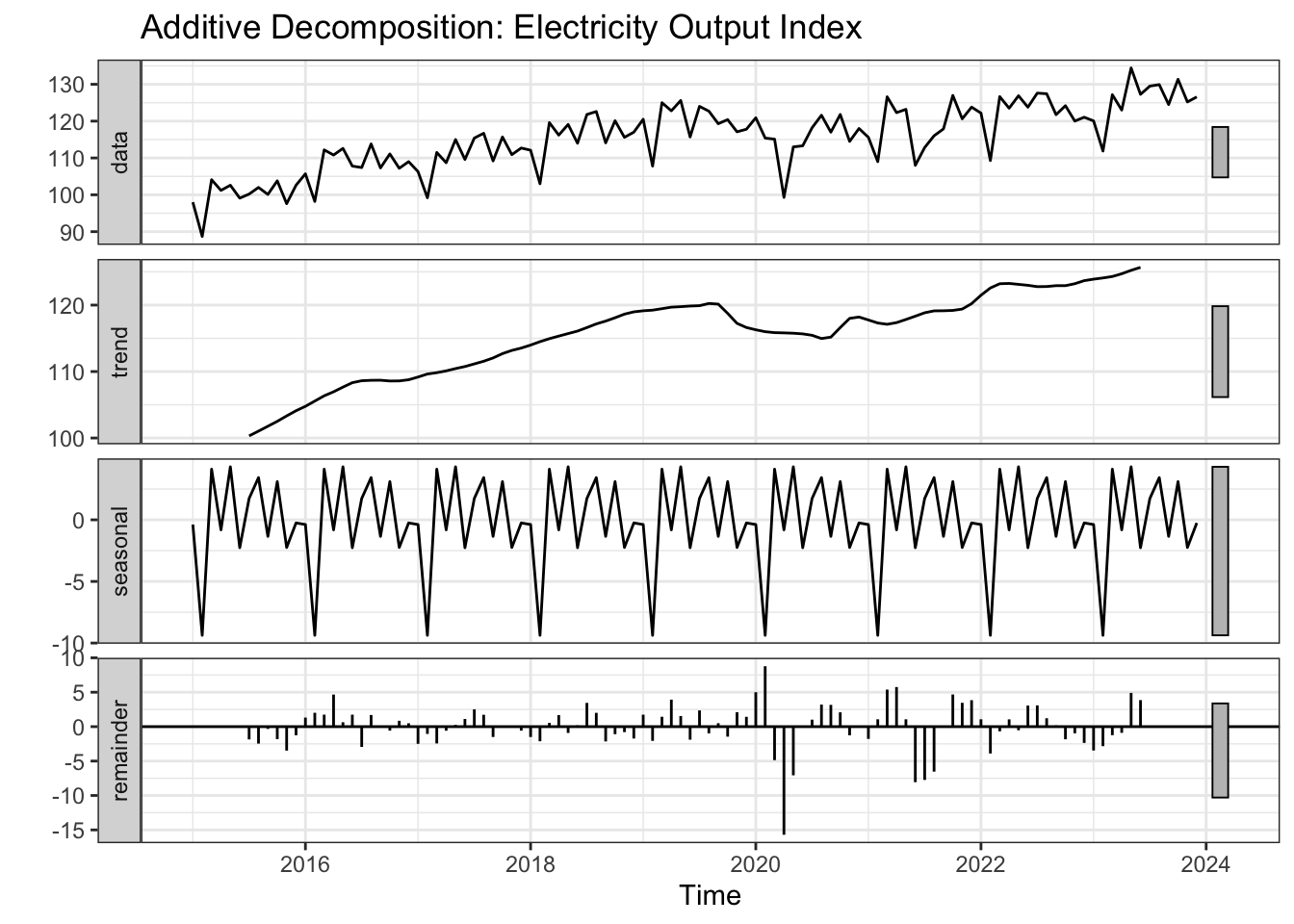 Figure 18: Additive vs. multiplicative decomposition of the electricity output index