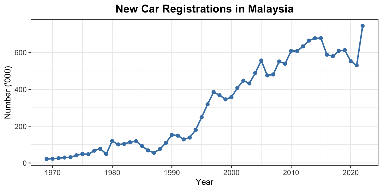 • Number of car registrations in 2022: \(y_{2022} = 744.78\) (’000)
