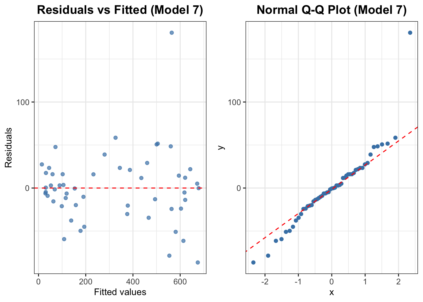 6. Statistical Validation: A valid model must pass six diagnostic tests: F-test, t-tests, adjusted \(R^2\), Breusch-Pagan (heteroscedasticity), Durbin-Watson (serial correlation), and VIF (multicollinearity).