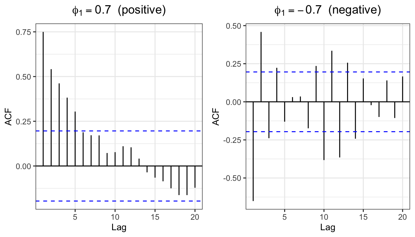 labs(title = expression(phi[1] == 0.7 ~ " (positive)")) + theme_ts()